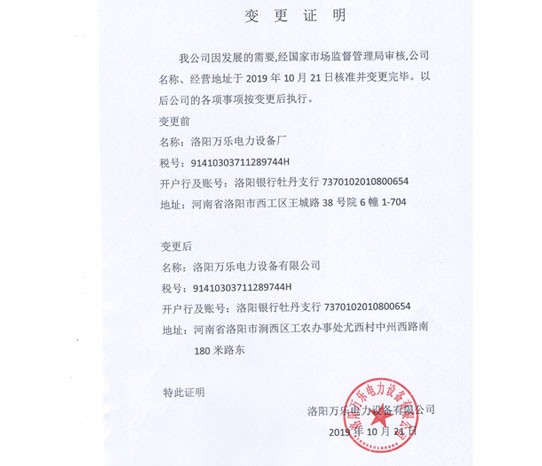 因公司发展需求,经过国家市场监督审核管理,公司名称、经营地址于2019年10月21日审核并变更完毕。